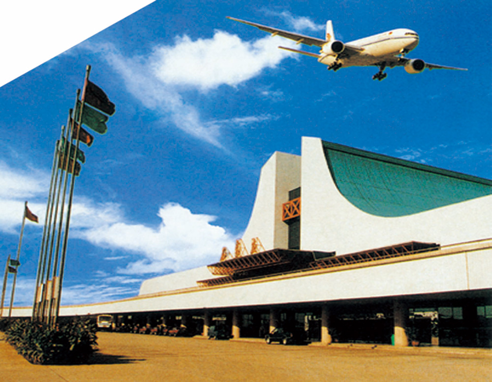 石家莊民航機場候機樓建筑面積26176㎡,為雙層框排架結構,平面和曲面空間網格構造體系,一層為進港大廳、休息廳,二層為進港大廳、值機、安檢等。工程項目包括候機樓和機場高架橋工程,高架橋包括高架平臺和上下引橋,采用大直徑鉆孔灌注樁基礎。該工程1994年建成,部級優質工程,獲評石家莊市十佳建筑。