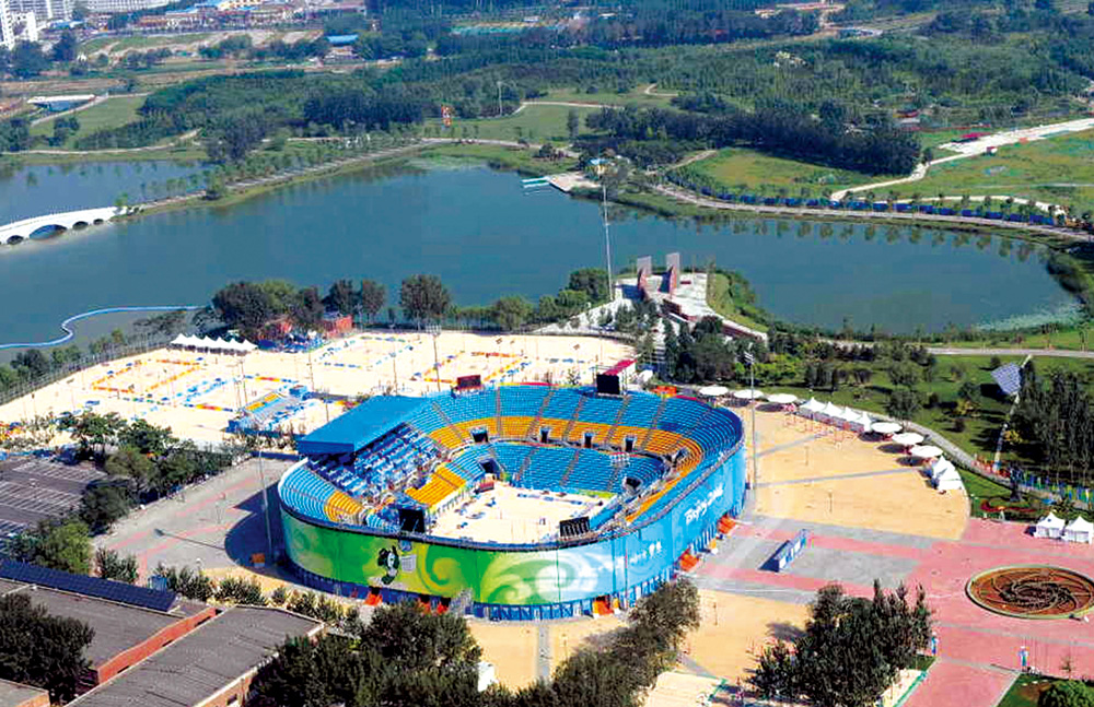 朝陽公園沙灘排球場為2008年北京奧運場館工程,位于北京市朝陽區朝陽公園內,整個工程由以下項目組成:一座12000座位的比賽臨時場館、兩塊熱身場地,其中一塊配200座位的媒體專用席位、六塊訓練場地、三座既有建筑物改造工程、室外廣場、道路硬化、市政管線等,工程包括2萬㎡人造沙灘和7萬㎡廣場地面塊材鋪設。河北省第四建筑工程有限公司施工總承包。