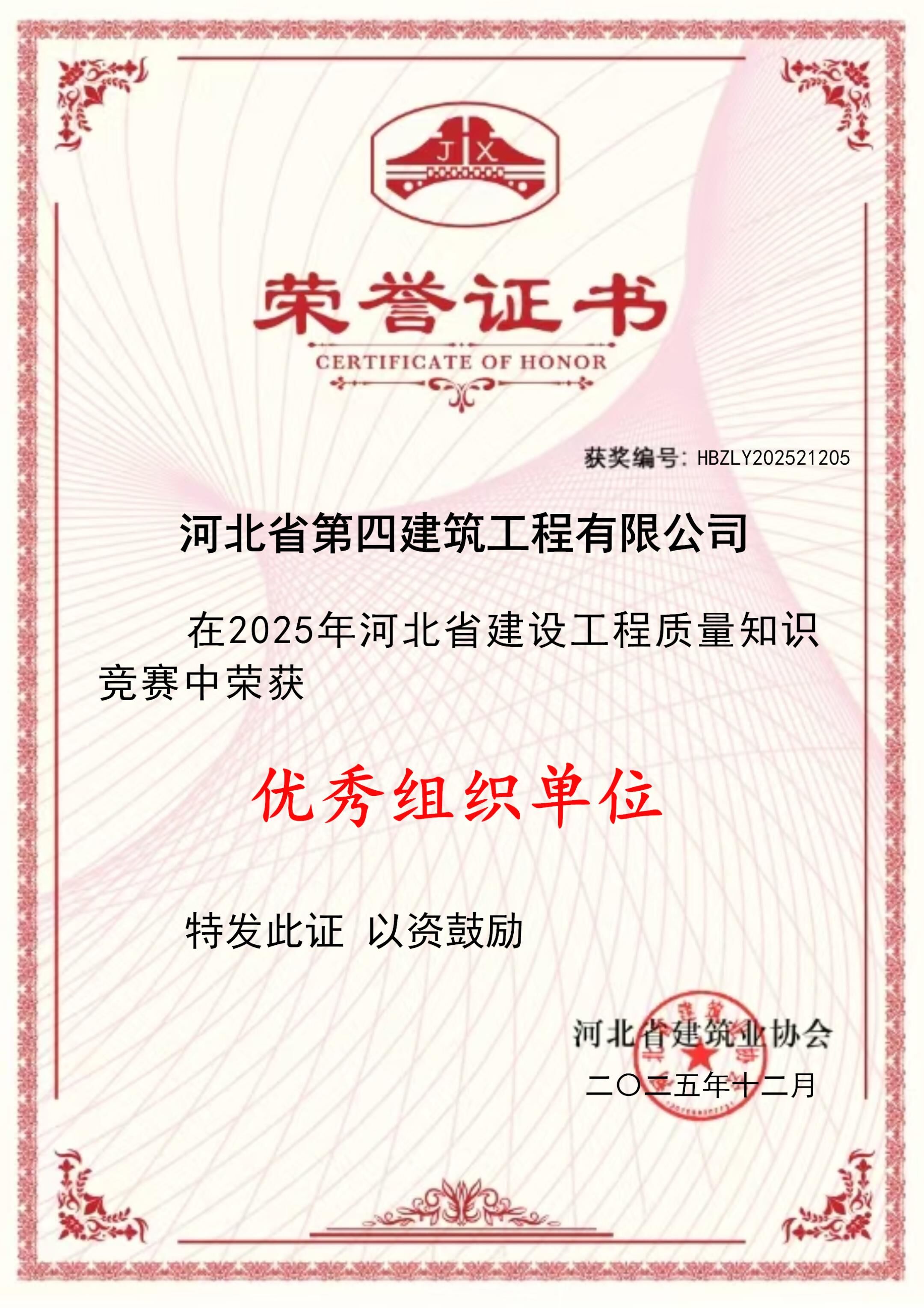2025年河北省建設工程質量知識競賽優秀組織單位