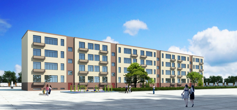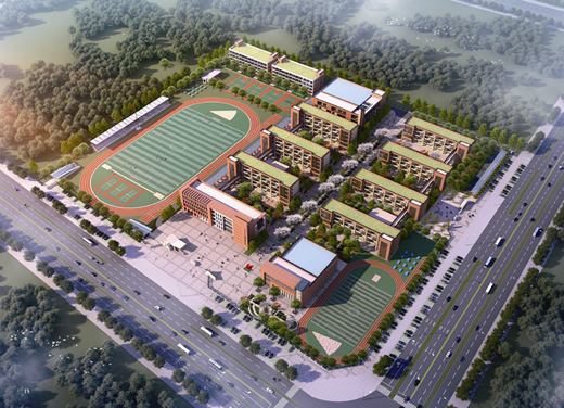 【滑縣電商職業中專建設項目】總占地面積52429.45平方米,總建筑面積42572.59平方米。包含教學實訓樓、行政及圖文信息樓、宿舍樓、食堂等。