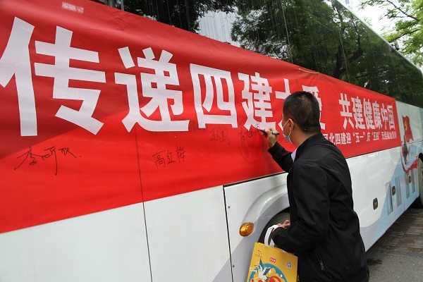 4月28日下午2點,在公司門口,一輛懸掛有“傳遞四建大愛、共建健康中國”紅色條幅的白色獻血車,和門口正上方的“河北四建”四個紅色大字相互映襯,顯得格外醒目;一條由四建職工組成的隊伍“長龍”,正在徐徐向前移動著。此時,由公司黨委宣傳部和團委聯合組織的以“傳遞四建大愛、共建健康中國”為主題的迎“五一”慶“五四”無償獻血活動,正在有條不紊進行中。公司機關以及附近片區的各單位職工共計48人參與。