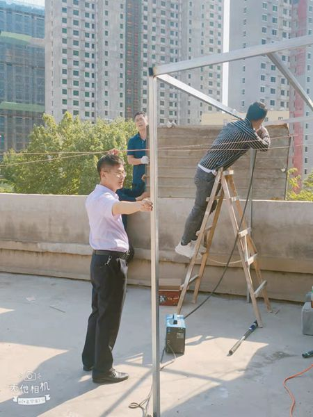 說干就干,立即行動。劉保國和左建華對樓頂平臺實地量測,記錄好尺寸。兩人一邊量著,一邊比劃著,對所需的材料做到心中有數(shù)。“采購材料的事兒,就交給我了。”設備材料科科長史永濤拿出電話就開始聯(lián)系起來。材料就位后,考慮到有些電焊的活兒需要專業(yè)的工人,劉保國趕緊聯(lián)系了一名電焊工。大家分工合作,你遞材料、我扶鋼管,你安裝、我綁線,邊干邊聊。30多度的高溫下,大家的額頭上直冒汗,但干勁兒絲毫沒減。防雨棚安裝完畢,新買的洗衣機放置到位,大家松了一口氣。“今天的大工程結束了,趁著這次機會,咱們把宿舍的門窗都檢查一遍。”劉保國說道,抬手擦了擦汗水,便拿起工具向宿舍走去。大家對宿舍的門窗逐一進行檢查,對破洞的紗窗進行了更換,對門上松動的把手進行了維修。