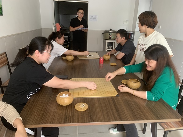 轉場來到“以棋會友,其樂無窮”的五子棋比賽現場,比賽在自由組合的七個小組之間進行,兩兩一組對弈,(。)經過層層比拼,決出了比賽的獲勝者。對弈過程中選手每走一步都深思熟慮,慎之又慎。低頭看向棋盤,黑子白子交錯之中,仿佛有無數的機關,橫向、縱向、斜向的棋子令人眼花繚亂。“橫看成嶺側成峰”,這些棋子復雜的排列更加考驗了參賽者的觀察能力。大家相互切磋交流,提高了棋技,也增進了彼此間的感情。