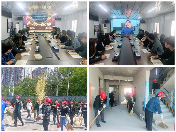 觀影結束后,黨員們走出會議室,戴好安全帽后,前往施工現場。目前,西三教項目正值施工黃金期,現場機械運轉不停,施工人員在各自的崗位上忙碌著。黨員們目睹了現場熱火朝天的施工景象,內心也被感染,迅速認領各項任務,分成5組趕赴B區1#至5#住宅樓,干脆利索地投身到勞動中。有的穿梭于材料堆放區,將沉重的周轉材料搬運至指定地點,汗水很快浸濕了衣衫;有的手持掃帚、鏟子,仔細清理施工場地的雜物與灰塵,不放過任何一個衛生死角;有的發揮專業特長,協助施工人員檢查安全隱患。大家相顧無言卻又默契十足,3個小時過去了,慢慢消失的是垃圾雜物,漸漸高漲的是勞動氣氛,越來越清晰呈現的是干凈整潔的施工現場。