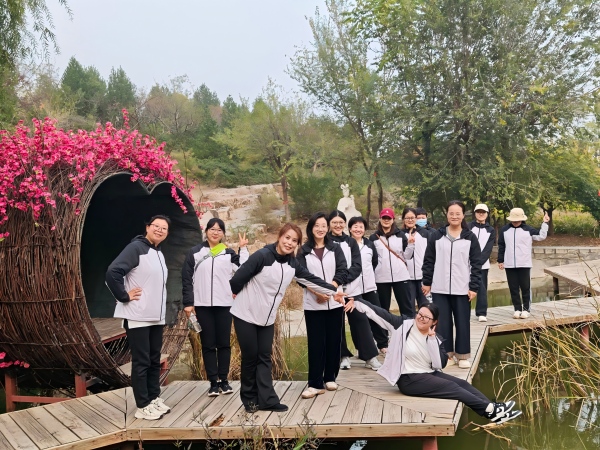 抵達抱犢寨準備登山前,主辦方進行了熱情洋溢的動員,并邀請專業人員帶領全體參與者開展熱身活動。此次登山路線以臺階路為主,目的地設定為抱犢寨索道中轉站。隨著主辦方一片區號長“出發”一聲號令,隊伍排列成1個縱隊靠右前行,主動為山間其他游客讓行,有效避免了擁堵。途中,幾名女職工因臺階較陡、強度較大,步伐緩慢,七分公司李植利立刻放慢腳步說:“跟著我節奏走,咱一步一步來,不急!”公司工會主席李懷生堅持當好“帶頭人”,始終走在隊伍前方。登山過程中,大家進一步增進了解、深化友誼,團隊的凝聚力與向心力愈發濃厚——而這種“不落下一個人”的團結協作精神,正是公司沖刺四季度、攻克工作難點的重要保障。