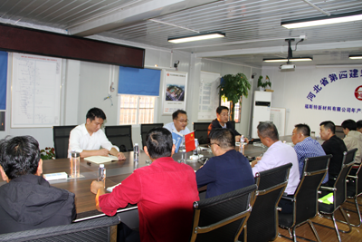 在會議室,董富強與項目部管理人員進行了工作交流,對各項工作給予肯定,強調項目部要提高站位,從嚴要求,以“四個樹”為工作著力點,在安全、質量、進度、文明施工方面再發力,再提升,提高項目管理效果。一是安全樹紅線,要抓住公司第17次“百日安全生產無事故倒計時”活動契機,強化安全責任,樹牢“紅線意識”,從嚴落實安全制度,工作要做細,杜絕一切安全事故發生。高支模專項方案屬于超危大項目,一定要按照規范要求組織施工。二是質量樹品牌。要弘揚“工匠精神”,做到標準化施工,確保混凝土密實度,結構幾何尺寸符合圖紙設計要求,切實做好質量通病防范措施,做到精益求精,打造好四建品牌。三是進度樹形象,要增強履約意識,倒排工期,制定詳細的進度計劃。要發揮四建鐵軍精神,抓住目前黃金時間全力施工,打硬仗、打勝仗,確保“115”目標實現,展現河北四建特級企業形象。四是文明施工樹標桿,現場各項文明施工要落實到位,做好揚塵防治工作,達到觀摩工地標準。