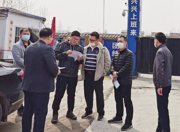 3月31日上午,石家莊市高新區復工復產督導組吳英蘭、張申一行五人到三分公司瑞鶴醫療項目檢查工作。