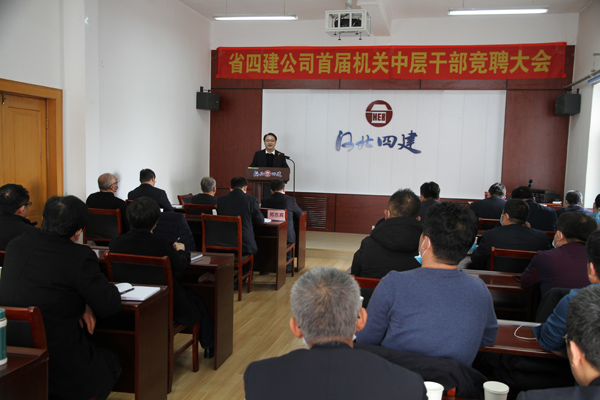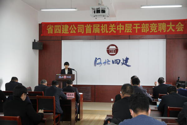 公開競(jìng)聘選賢才,四建才俊展風(fēng)采。2021年2月24日,省四建公司首屆機(jī)關(guān)中層正職崗位競(jìng)聘會(huì)在四樓培訓(xùn)中心舉行。30人(次)英才跨上講臺(tái),暢談自己對(duì)11個(gè)中層正職崗位的履職目標(biāo)和創(chuàng)新舉措,為公司各部門的管理獻(xiàn)計(jì)獻(xiàn)策。這是公司成立以來(lái)首次機(jī)制改革大規(guī)模人才選拔考評(píng)活動(dòng)。公司黨委書記董事長(zhǎng)董富強(qiáng)發(fā)表開賽致辭和總結(jié)講話。公司黨委副書記、紀(jì)委書記、工會(huì)主席李懷生主持競(jìng)聘大會(huì)。