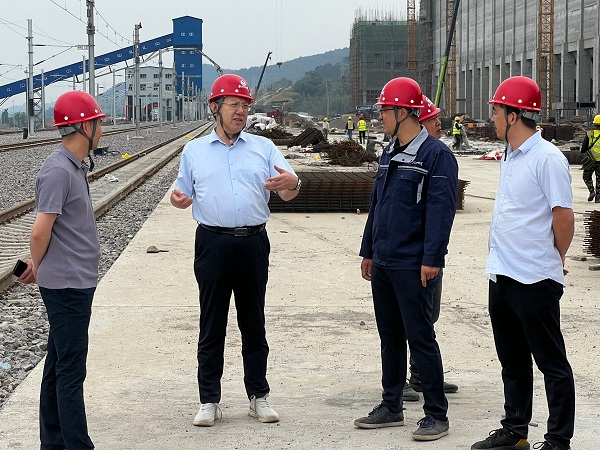 正值中午時分,唐志強不顧天氣炎熱,直奔施工現場。他實地查看正在進行庫頂上部結構施工的裝車倉,對滑模外觀質量給予肯定,針對后續工程,強調要細化節點、加快施工,避免前緊后松問題。裝車倉周邊有多個轉載點框架,結合這些框架“又高又瘦”的特點,唐志強反復叮囑項目部注意施工安全,要求重點做好操作面的安全防護,并從這類工程的承接策劃、成本測算等方面與大家進行交流探討。項目施工區域面積大、房號分散,唐志強邊走邊看、邊看邊問、邊問邊指導,“汽車受煤坑什么時間完工?”“基坑防護噴漿是打錨桿嗎?”……從方案論證、安全防護、施工組織等方面有重點地進行指導。貯焦槽方倉滑模已經結束,唐志強與同一現場其他單位的方倉滑模進行對比,充分肯定了項目部在質量管控上的成果。唐志強進一步詢問貯焦槽剩余工作內容,了解到庫頂板施工有獨特之處,需要先安裝貝雷架,在貝雷架上面搭設承重架體后再施工庫頂板,他叮囑項目經理務必做好方案論證,保證安全施工。在巡查完1#篩焦樓和3#、4#轉運站后,結合這些高框架多層不設頂板的結構特點,唐志強從周轉工具占用量大的角度分析,強調要多個子項統籌推進,科學合理組織施工,千方百計加快進度,有效降低成本。