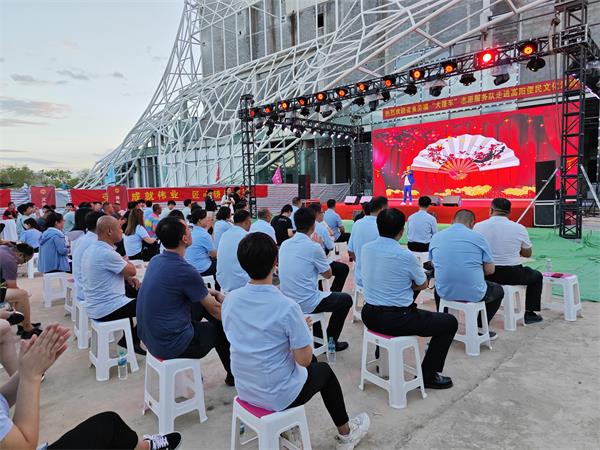 據悉,項目部高度重視此次志愿服務活動,統籌安排人員,積極與志愿服務隊對接,在施工現場規劃出一片場地,進行清理和平整,供舞臺搭建使用。在活動前一天,項目部在微信群內發通知,將活動內容逐項說明,確保每一名職工知曉。為保證職工能夠按時觀看節目,項目部食堂準備了便于食用的晚餐,并提前購買了礦泉水、水果等放在現場,方便大家隨時取用。