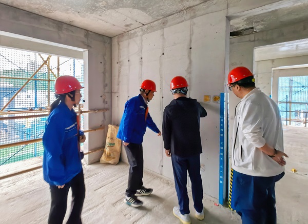 最后,觀摩團一同走進D區8號樓,實地查看了一、二樓層的施工質量,如鏡面般平整的墻面引起了眾人關注。項目經理呂滾才隨即介紹道:“我們采用了‘一板到頂’支模工藝,實現混凝土結構一次成型,相較于傳統工藝,更好地確保了屋面美觀性。”來自張家口市住建部門的一名觀摩人員輕叩墻面稱贊道:“這質感,一看就是‘正規軍’的水平。”