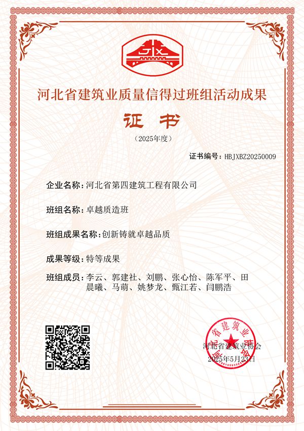 5月25日,三分公司收到河北省建筑業協會關于2025年度河北省建筑業質量信得過班組活動結果的通報,由分公司“卓越質造班”班組完成的“創新鑄就卓越品質”成果,被評為“特等成果”。