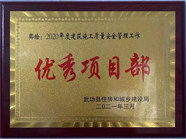 4月25日,武功縣住房和城鄉建設局表彰了2020年度建筑施工、房地產開發和物業管理工作先進集體和先進個人,四分公司陜西金沙河項目榮獲“2020年度建筑施工質量安全管理工作優秀項目部”稱號。