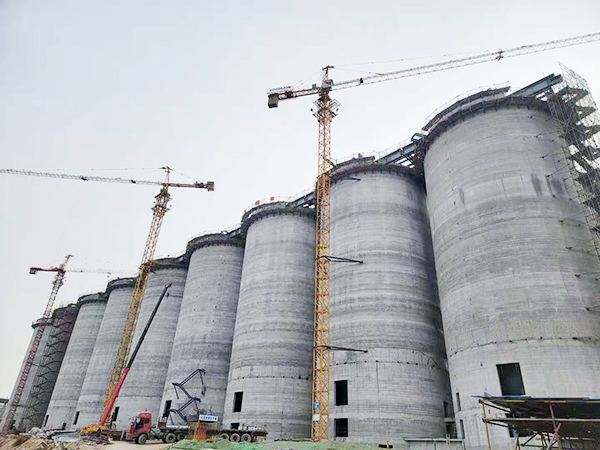 2月28日,A9筒倉準備滑模,作業工人冒雨加班僅用4天完成滑模機具的組裝。3月16日,A1筒倉鋼梁開始吊裝,項目班子、安全員以及監理、甲方的項目負責人集體旁站監督,上午9點準時進行260噸履帶吊的試吊,確認無問題后僅用3小時完成主梁的倒運,隨即開始吊裝。3月27日,A9筒倉倉頂環梁澆筑完成,距離A線全線貫通邁出關鍵一步。4月17日,項目部率先完成A9筒倉與M101轉運站的軸線交接;4月18日,A8筒倉倉頂板澆筑完成,從壓型鋼板安裝到澆筑完成只用了3天時間,標志著A線筒倉全部封頂。隨后全面進入設備安裝階段,項目部頂住中央環保組進入銅冶鎮環保檢查的壓力,一手抓安全文明施工,逐項落實各項環保要求;一手抓設備安裝進度,加班加點趕工期,提前兩天完成甲方確定的工期節點。