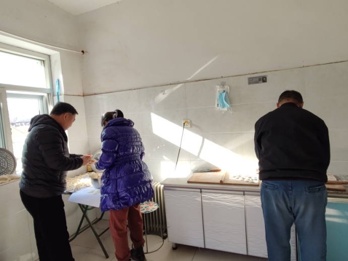12月20日下午,租賃分公司經理王建忠和副經理葛利,計劃冬至包餃子為職工午餐增添花樣,同時安排好職工包餃子的準備工作。21日早上,食堂工作人員提前活好面、剁好白菜……為包餃子做好準備。