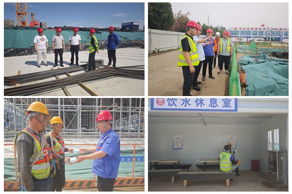 各項目部持續加強施工現場安全檢查和隱患排查工作,成立專門的安全檢查小組,增加檢查頻次,每天對施工現場進行全面細致的檢查。一是檢查人員健康狀況。檢查作業人員健康檔案,關注對高溫敏感人員的身體狀況,檢查是否落實崗前體溫檢測,嚴禁帶病或身體不適人員從事高溫作業。二是檢查施工設備與用電安全。重點檢查電線電纜是否因高溫加速老化,出現絕緣層脫落、開裂等問題,防止短路和觸電事故;查看電氣元件有無過熱燒毀跡象;檢查塔吊、升降機等大型設備液壓系統及散熱系統,避免因高溫導致設備故障;排查用電設備接地保護,防止因高溫引發電氣火災。三是加強消防安全與危化品管控。針對高溫易燃風險,重點排查模板堆場、材料倉庫等區域的防火措施;核查油漆、氧氣瓶等易燃易爆品儲存條件,遠離熱源與明火。(三分公司)
